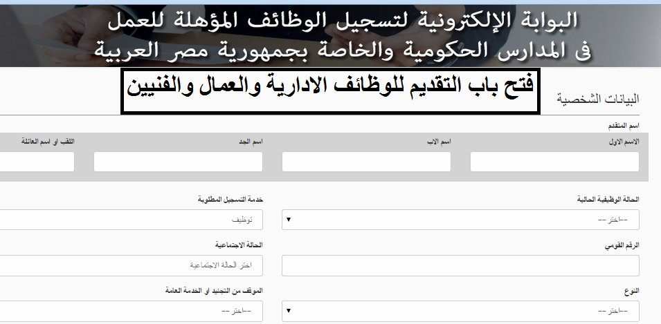 فتح باب التقديم والتسجيل للوظائف الادارية والعمال بمسابقة وزارة التربية والتعليم