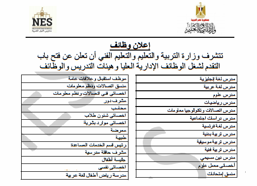 اعلان وظائف مدارس النيل المصرية Nes للمؤهلات العليا والمتوسطه 2019
