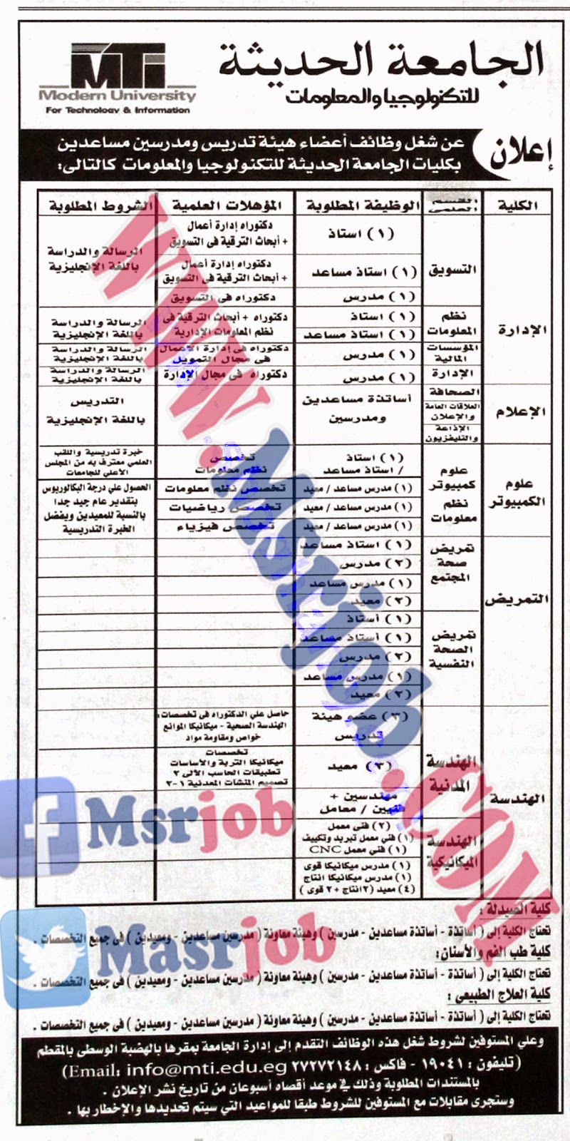 الجامعة الحديثة للتكنولوجيا والمعلوم سكربت توظيف وظائف