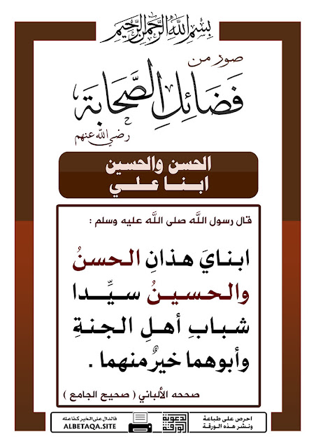 صور من فضائل الصحابة الحسن والحسين ابنا علي رضي الله عنهم خيرامة