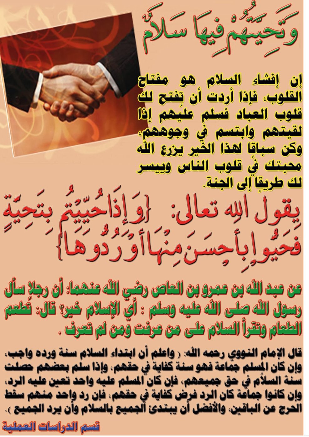 تحية الاسلام هي تحية اهل الجنة آدابها وفوائد تحية الاسلام والاحوال التي لا تشرع فيها جدران عربية
