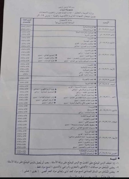 تحديث جدول إمتحانات الشهادة السودانية 2019 شبكة المقرن
