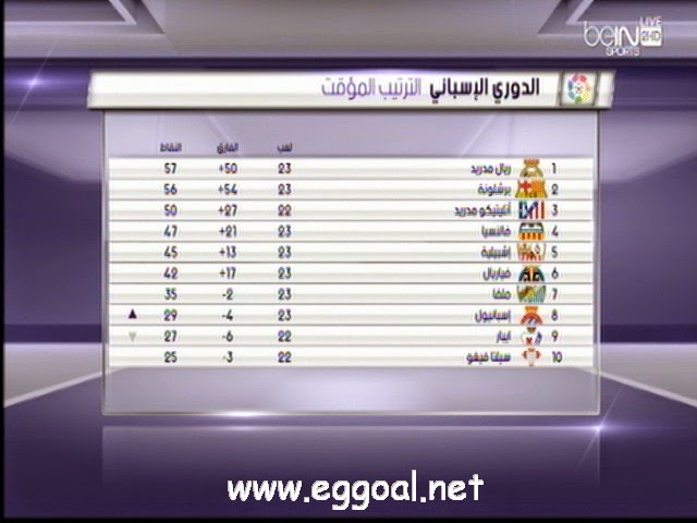 جدول ترتيب الدوري الإسباني والهدافين بعد الجولة الـ 27