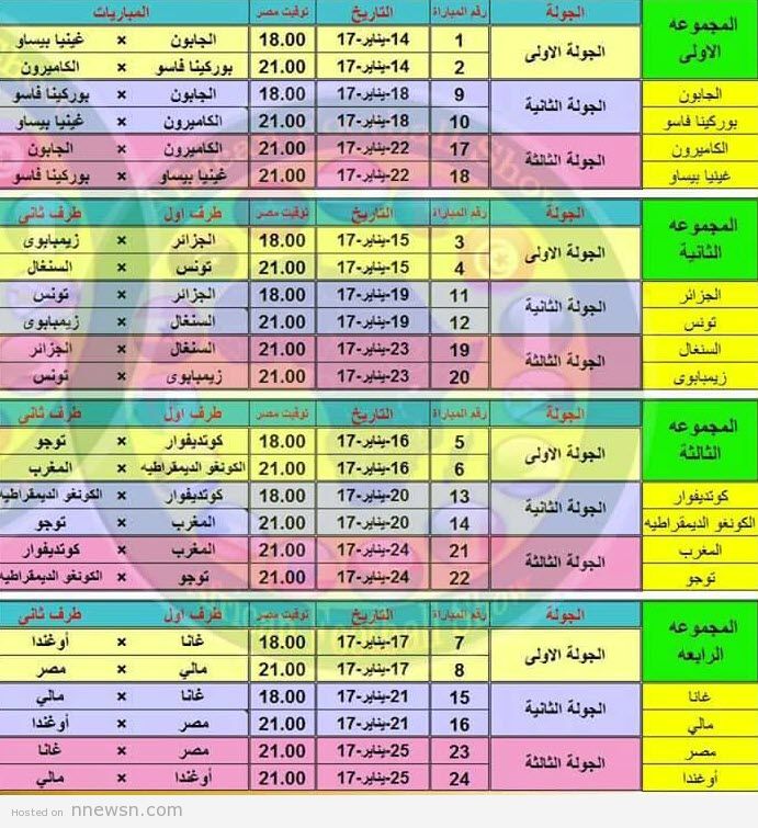 جدول مواعيد مباريات بطولة كأس أمم أفريقيا الجابون 2017 حسب توقيت القاهرة بوابة الثانوية العامة المصرية