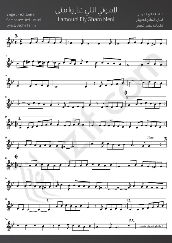 Notes Musicale نوتات موسيقية نوتة اغنية لاموني اللي غاروا مني