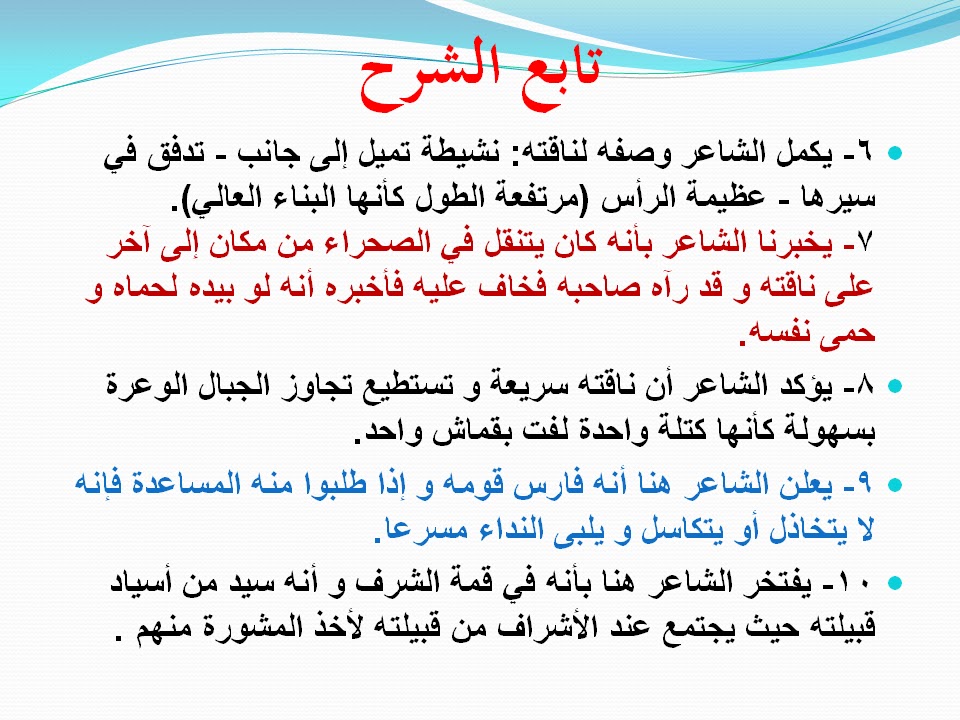 سلطنة عمان شرح قصيدة من معلقة طرفة بن العبد في اللغة العربية للصف الحادي عشر نصائح تربوية